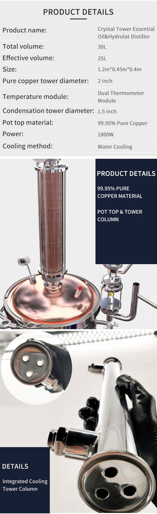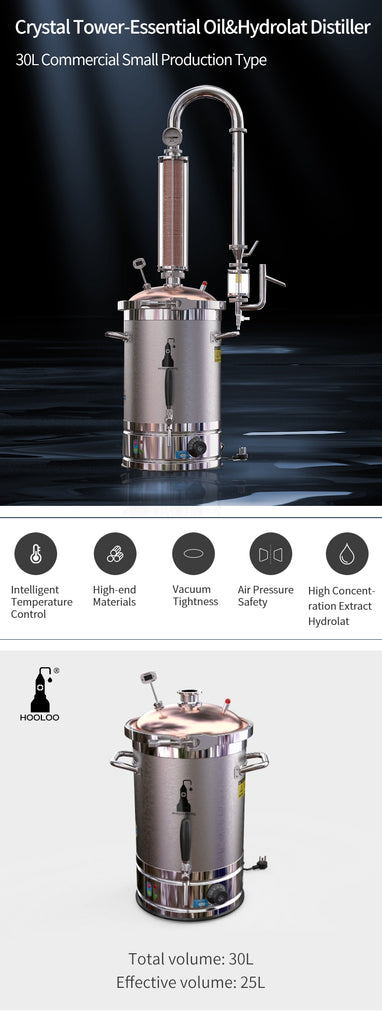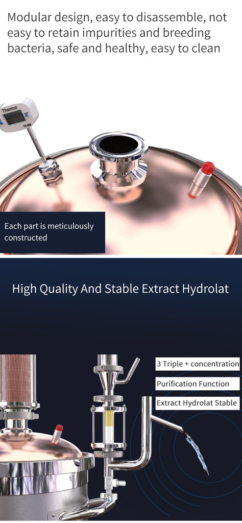 20L/30L/65L Destilliergerät zur Extraktion ätherischer Öle aus Kupfergeflecht mit Glassäule
