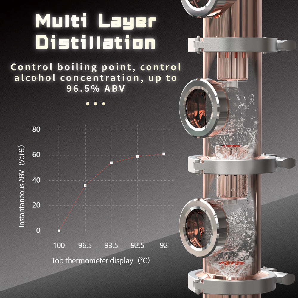 Unsere Destillierapparate können zu verschiedenen Anlässen zur Herstellung von Gin, Whisky, Brandy, Wodka, Rum, Hydrolat und ätherischen Ölen verwendet werden und eignen sich für Heizmethoden wie Gasherde, Holzfeuer, elektrische Keramikherde, Induktionsherde usw.