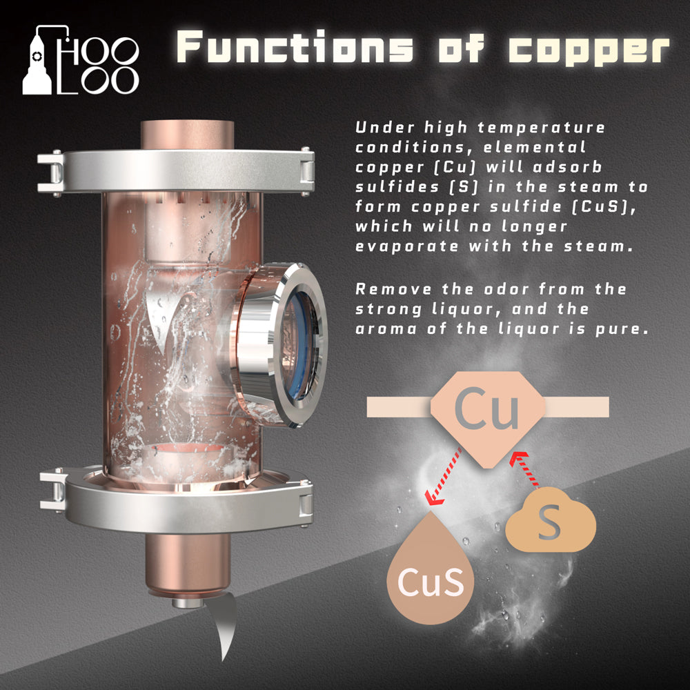 CT30Cu-Destilliergerät mit Glassäule und Kupferdeckel, reiner Kupferkristall, vollständige Destillation, exquisite Brauausrüstung. Reines Kupfer kann mit Sulfid kombiniert werden, um Sulfid zu entfernen, schnelle Entfernung von Methanol/Aldehyd, Lock-in-Fusenöl, das Geheimnis der Verbesserung der Spirituosenqualität.