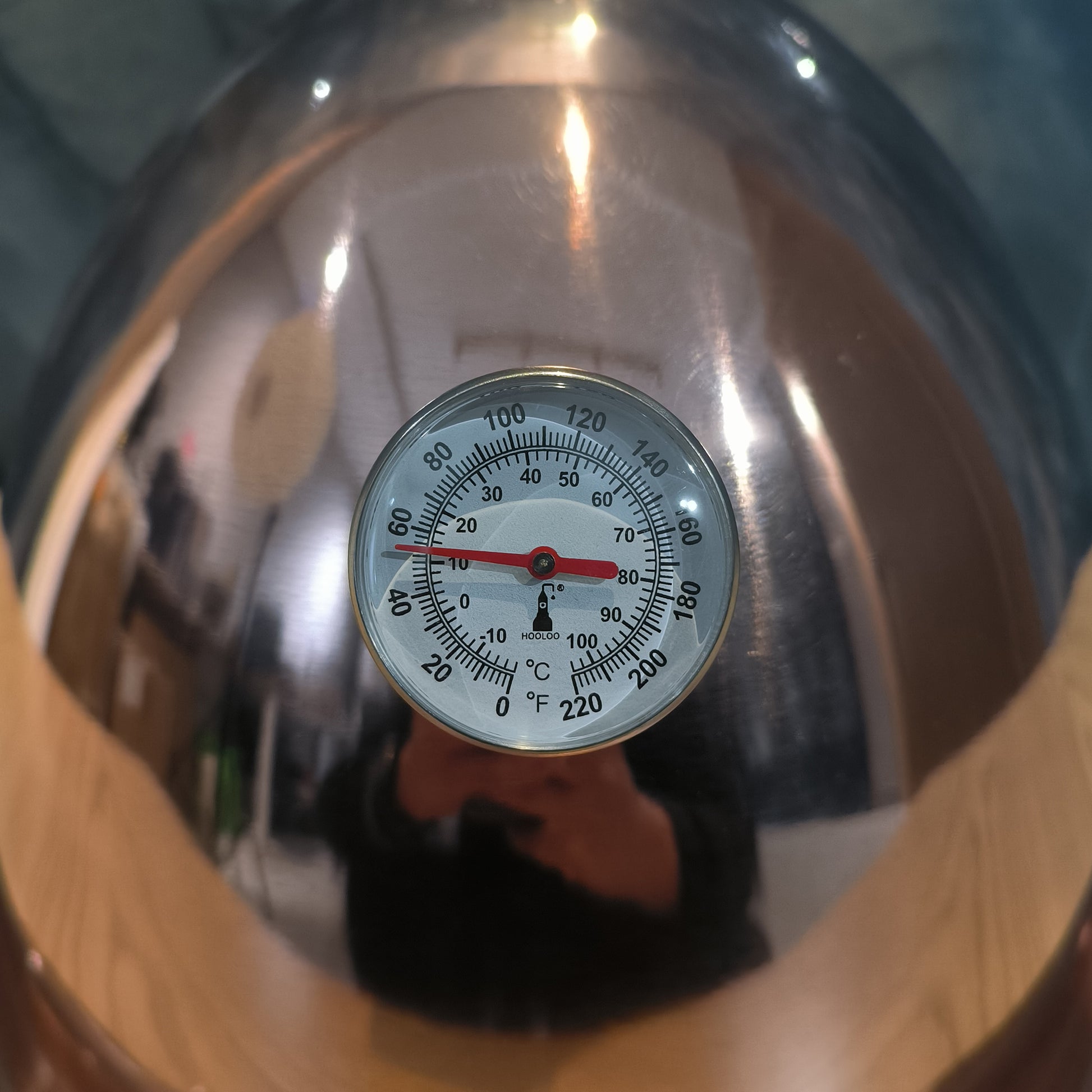 - Dual-Ring Thermometer: Equipped with a built-in probe thermometer and dual-ring temperature display dial, this lid provides real-time temperature monitoring during the distillation process, ensuring optimal results every time.