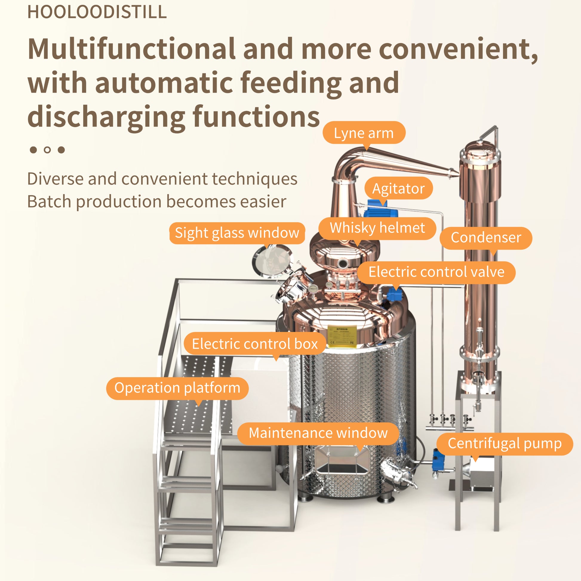 2000L Copper Elevation Lynn Arm Wash/Pot Still Whiskey Distiller