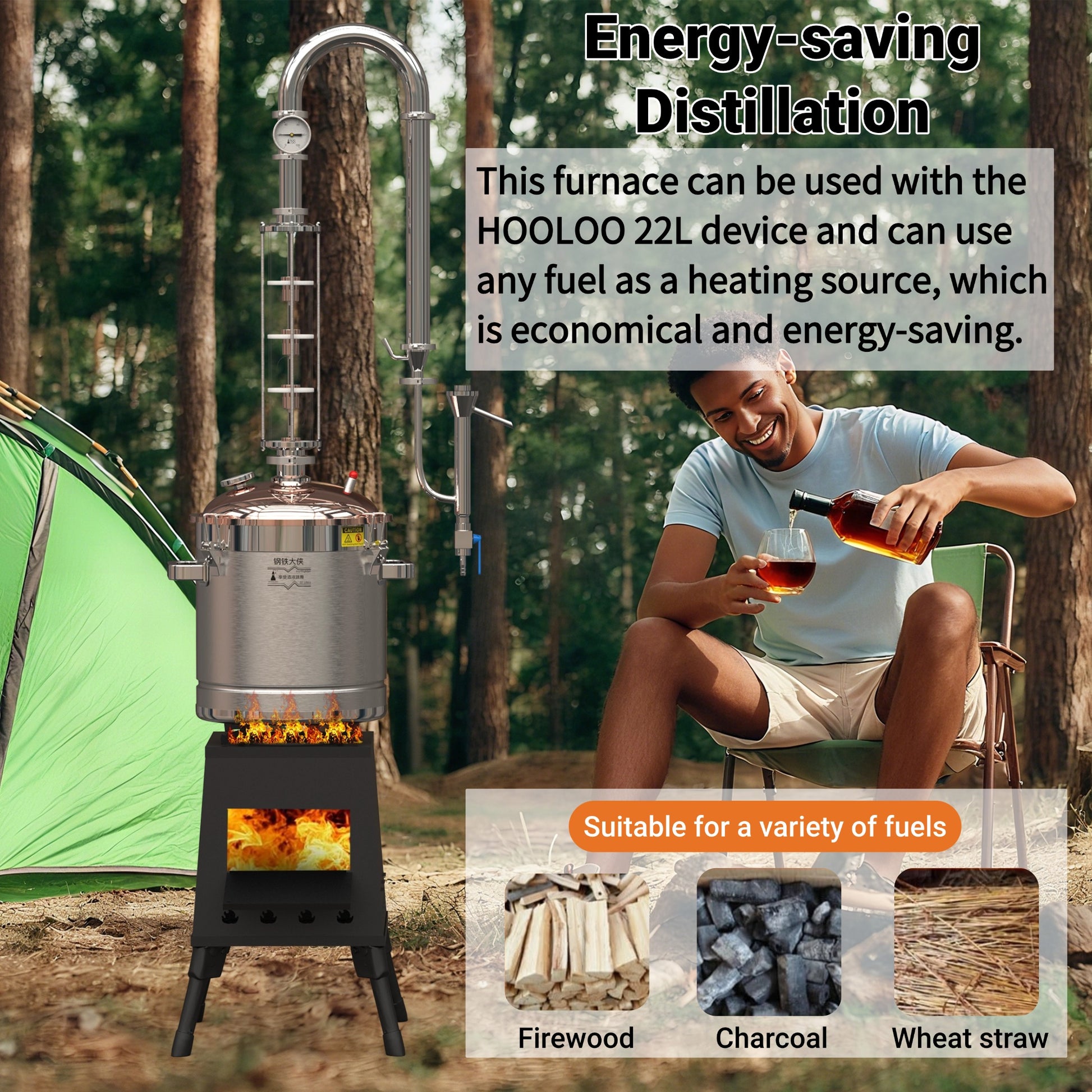 HOOLOO Outdoor Small Portable Wood-Burning Stove for 22L Direct Fire Distillers